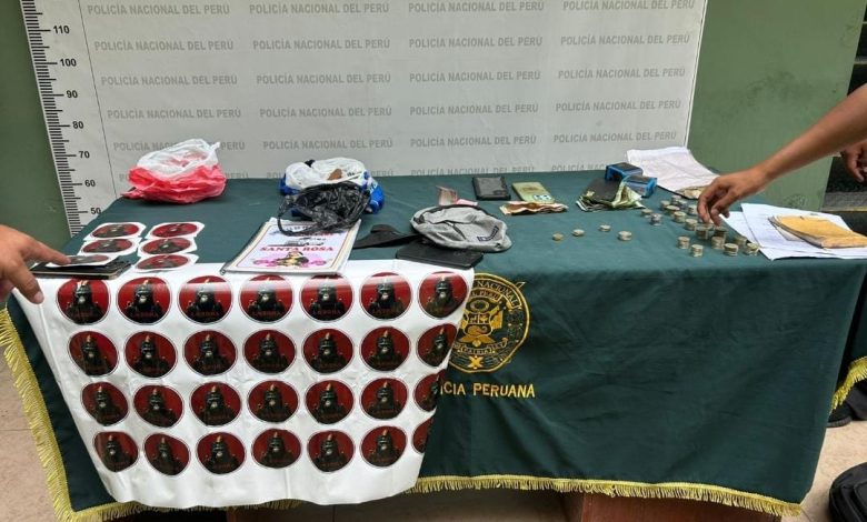 Efectivos de la Policía Nacional detuvieron a cinco presuntos miembros de la organización criminal y decomisaron granada, dinamita, armas y calcomanías usadas para marcar a sus víctimas.